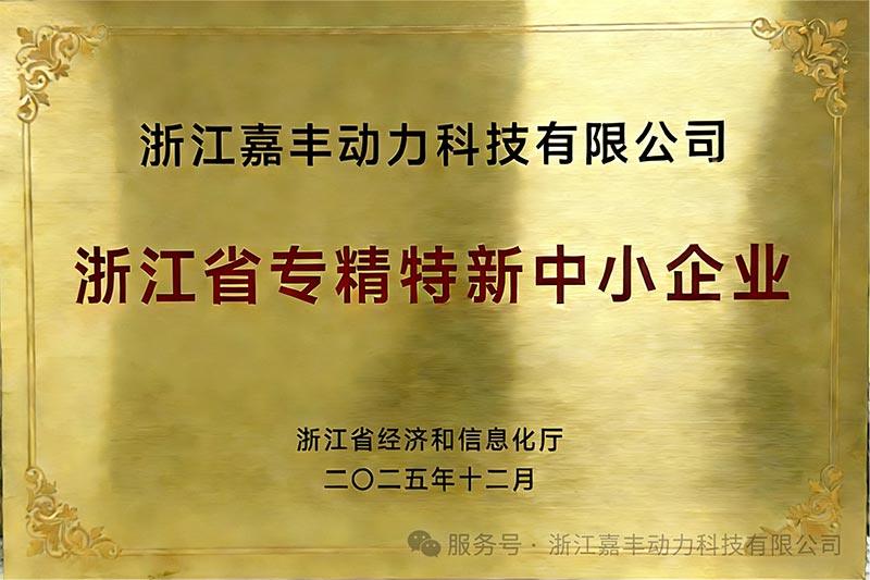 Недавно,Чжэцзян Цзяфэн Power Technology Co., Ltd.(далее «Сила Цзяфэн») получила потрясающие новости. Благодаря выдающимся достижениям в профессиональной специализации и технологическим инновациям компания успешно прошла проверку и получила звание «Специализированное, изысканное и инновационное» малое и среднее предприятие в провинции Чжэцзян.